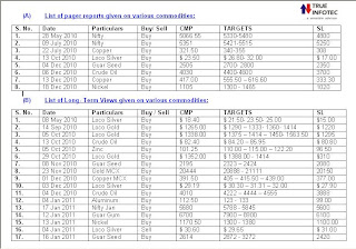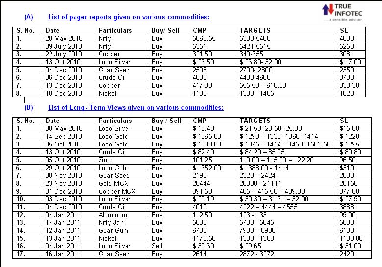 DISCLAIMER: Stock & Commodity trading is a high-risk movement. The above recommendations are based on Technical Analysis. Any major fundamental news or market sentiment can make these levels irrelevant or unsuccessful. The targets and time frame for the same mentioned above are indicative and may vary depending upon the market situation. Receivers are urged to exercise their own judgment in trading. Any action you choose to take in the markets is totally your own responsibility. We (TRUE INFOTEC) will not be liable for any, direct or indirect, consequential or incidental damages or loss arising out of the use of this information. This information is neither an offer to sell nor solicitation to buy any of the commodities mentioned herein the writers may or may not be trading in the securities mentioned.