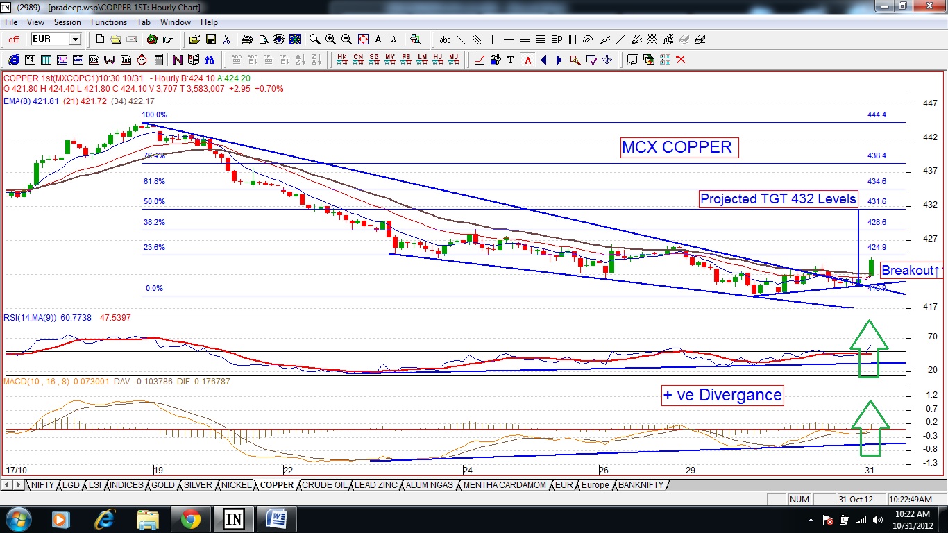 MCX Copper Updates :: Projected TGTS 428.00 - 432.00 Levels, as long as holds 419.00 (SL), CMP 424.00