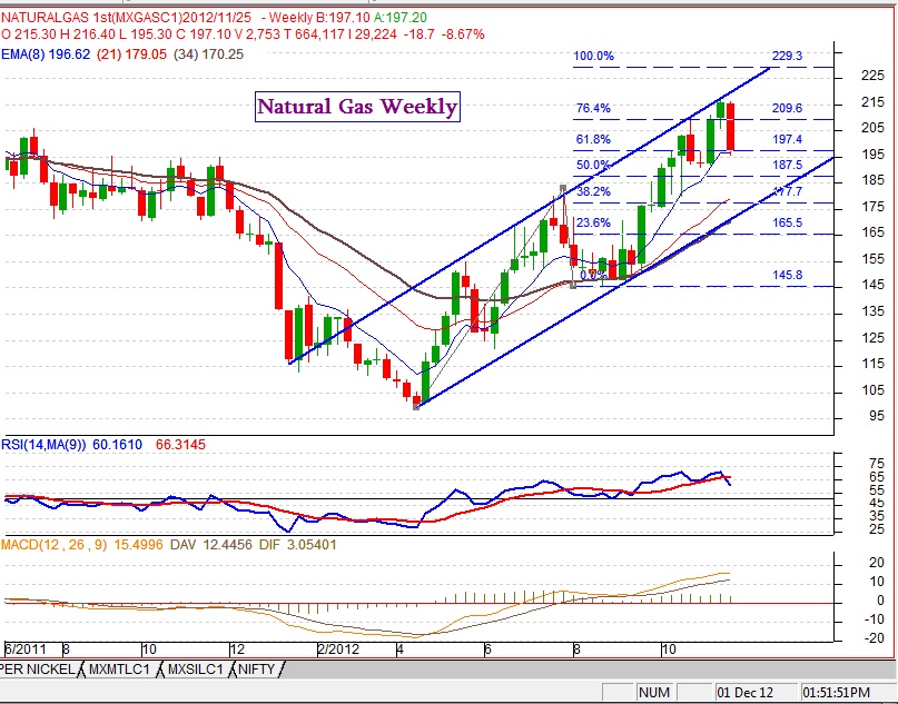 Sell MCX Natural Gas 204-206 TGTS 188 –